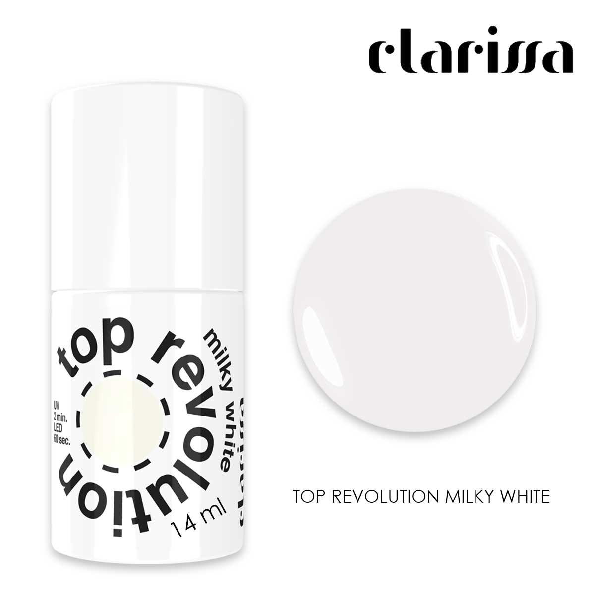 TOP REVOLUTION MILKY WHITE Caratteristiche Formula senza strato dispersione Nessuna bruciatura anche su unghie morbide e sottili Formula HEMA Free per ridurre il rischio di reazione allergiche Non contiene sbiancante ottico Applicazione Applicare uno strato di Top Revolution dopo la stesura del colore, polimerizzare in lampada Uv/led 60 sec. o in lampada Uv 2 min. Può essere utilizzato per sigillare smalti semipermanenti, gel, acrilico e acrygel. Rimozione Eliminare con il buffer lo strato lucido, applicare un pad imbevuto di Solvigel per sciogliere il top e procedere alla rimozione con un bastoncino d'arancio.