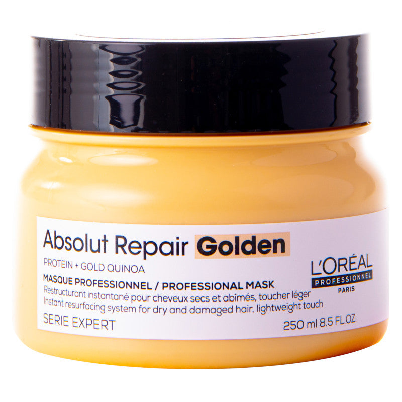 Immergi i tuoi capelli in un bagno dorato. La maschera rigenerante per capelli danneggiati L’Oréal Professionnel Serie Expert Absolut Repair Gold Quinoa + Protein, arricchita con ingredienti nutrienti, ha una sensuale texture cremosa in gel grazie alla quale riesce a rigenerare a fondo la fibra capillare senza appesantirla. Con questa maschera dorata, tutti i tipi di capelli splenderanno da lontano di bellezza e salute.