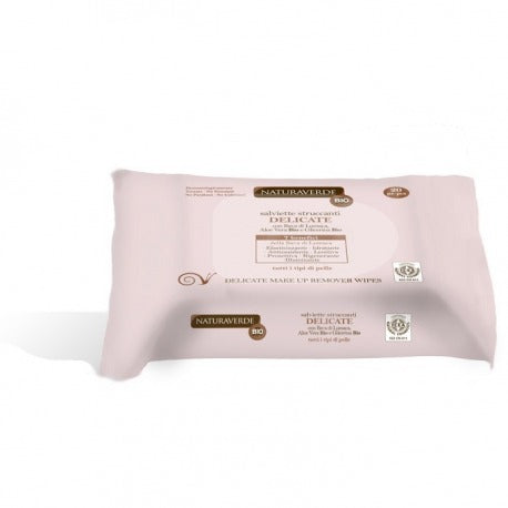 NaturaVerde SALVIETTE STRUCCANTI DELICATE con Bava di Lumaca, Aloe Vera Bio e Glicerina Bio Le Salviette con Bava di Lumaca grazie alla loro formula delicata detergono e rimuovono il trucco di viso, occhi e labbra. Laggiunta di Aloe Vera Bio e Glicerina Bio doneralla pelle morbidezza e luminositoltre che un viso piacevolmente profumato. Adatto a tutti i tipi di pelle. - Modo duso: rimuovere il trucco su viso, collo e dolletcon un leggero massaggio. Non serve risciacquare. Contenuto: 20 pz