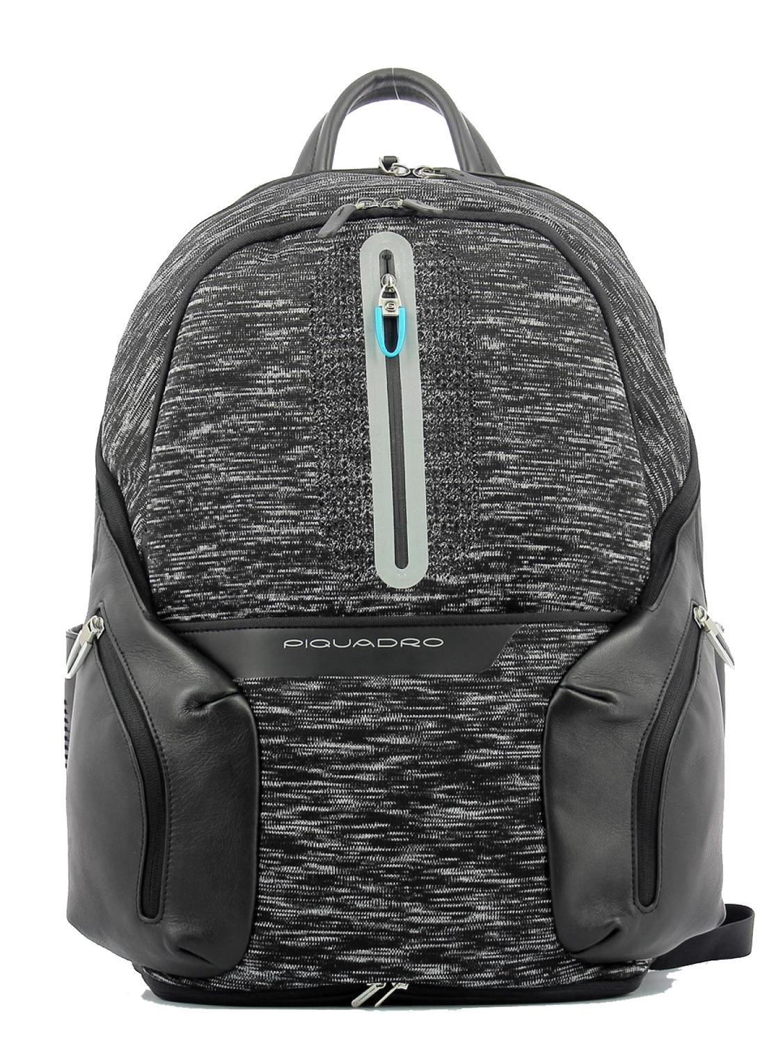 Piquadro, ファブリックバックパック、ブラック/グレー、ノートパソコンとiPad用コンパートメント、メンズ、43.5 x 32 x 18.5 cm