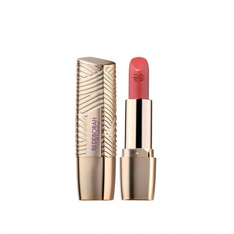 L`iconico rossetto Milano Red di Deborah Milano torna in una veste completamente rinnovata: make-up look effetto filler, colore pieno e brillante fin dalla prima passata, comfort estremo e long lasting. Fra gli ingredienti della nuova formula di Milano Red, l`estratto di olio di Ambra e Oro ricchi di vitamine per mantenere le labbra nutrite si combinano all`Acido Ialuronico: la formula si compone così di attivi che rigenerano e donano un incredibile comfort alle labbra proteggendole da ogni fastidiosa secchezza e agente esterno. La texture, ricca e fondente, aderisce perfettamente alle labbra regalando un colore definito ed omogeneo fin dalla prima passata. Milano Red si presenta con il suo nuovo pack dorato arricchito di un pattern dalle linee sinuose proponendosi fin da subito come un alleato fedele ed insostituibile nella beauty routine di ogni giorno. Delicatamente profumato ai fiori d`acacia.