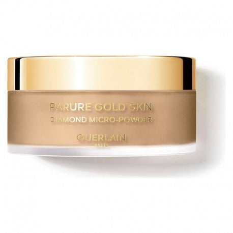 Come ultimo step del rituale Parure Gold, Guerlain ha ideato Parure Gold Skin Diamond Micro-Powder. Grazie alla sua texture leggera e delicata, infusa di oro puro 24 carati e polvere di diamante, fissa il trucco, uniforma l`incarnato e dona al viso una luminosità naturale.