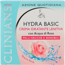 Clinians Hydra Basic Crema Idratante Lenitiva contiene Bisabololo e Amido di Riso che, grazie alla loro azione calmante ed emolliente, lenitiva, aiutano a ridurre i rossori e ad alleviare la sensazione di secchezza della pelle. LAcqua di Rose presente in formula svolge un'azione tonificante. Il Pantenolo e l'Inositolo preservano la corretta idratazione della pelle, mentre un Derivato Zuccherino crea un film invisibile che aiuta a contrastare i fattori di stress cutaneo che aggrediscono quotidianamente la pelle e riduce la naturale perdita d'acqua transepidermica. Giorno dopo giorno la pelle, anche quella più sensibile, è più idratata, morbida e protetta. Con un utilizzo continuativo i rossori cutanei, generati dalle aggressioni esterne, si attenuano visibilmente. Inquinamento, condizioni ambientali sfavorevoli, detergenti troppo aggressivi, esposizione al sole inadeguata sono fattori che possono alterare gli equilibri delle pelli delicate e sensibili, causando rossori cutanei e disidratazione. Clinians Hydra Basic Crema Idratante Lenitiva è il trattamento ideale per idratare e donare comfort alle pelli sensibili, a qualunque età. È una crema viso idratante in grado di svolgere una triplice azione: aiuta a migliorare e mantenere l'idratazione cutanea, a proteggere la pelle riducendone i rossori cutanei e a lenirla dalle aggressioni esterne quotidiane. La sua texture ricca, dal tocco setoso e vellutato, si assorbe rapidamente donando un'immediata sensazione di idratazione e morbidezza. Clinians Hydra Basic Crema Idratante Lenitiva, il tuo trattamento per una pelle idratata e protetta.
