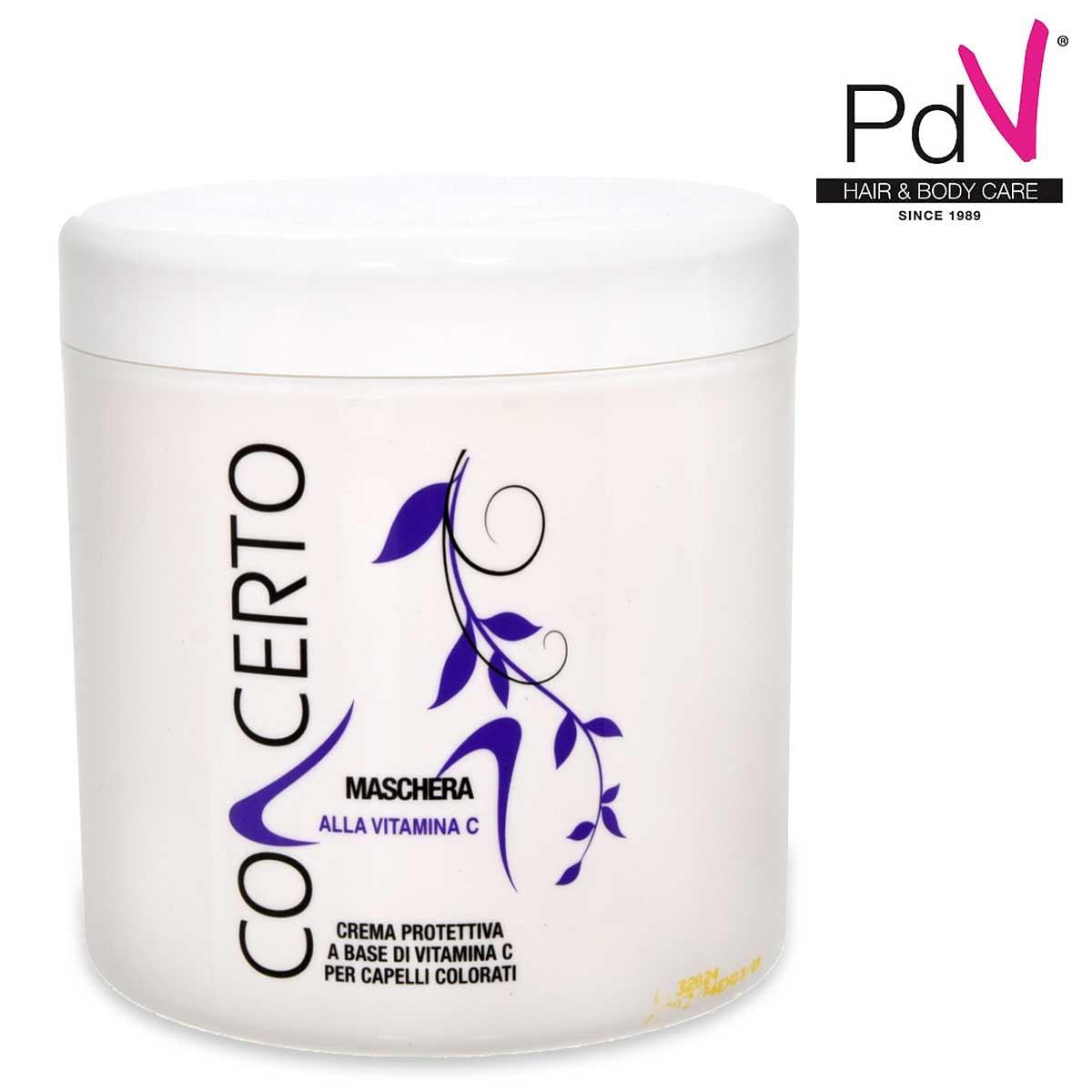 MASCHERA ALLA VITAMINA C Concerto 1000 ml La maschera Concerto a base di vitamina C è il trattamento ideale per i capelli colorati: grazie alle sue proprietà antiossidanti e fotoprotettive, preserva il colore dagli agenti atmosferici e dona al capello vitalità, luminosità e, al tempo stesso, leggerezza. Svolge, inoltre, un'azione districante e ristrutturante.