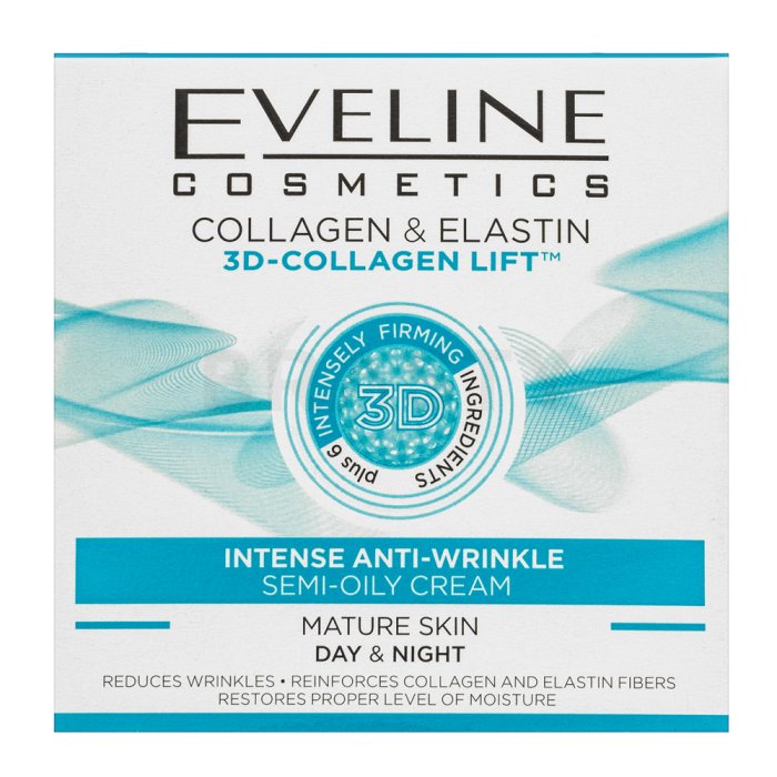 La perdita di elasticità dell'epidermide comporta anche la comparsa di rughe premature. Per evitare questo spiacevole fenomeno bisogna ristabilire l'equilibrio idrolipidico della pelle saturandola di umidità vitale non solo dall'interno, ma anche dall'esterno. Collagen & Elastin Lift Intense è la crema antirughe del famoso marchio polacco Eveline Cosmetics che, grazie alla sua consistenza ricca e densa, si fonde letteralmente a contatto con la pelle. Il prodotto viene assorbito istantaneamente dalle cellule, non lascia residui appiccicosi e funge da base eccellente per il trucco. Il componente principale della formula lifting della crema è un estratto di alghe naturali, ricco di proteine, lipidi, minerali e preziosi oligoelementi che ripristinano la sintesi di collagene ed elastina, levigano le rughe, migliorano le funzioni di resistenza della pelle e ne normalizzano l'equilibrio idrolipidico. || Applicare la crema al mattino e alla sera sulla pelle pulita del viso, del collo e del decolleté, lasciare assorbire. Consigliata come base per il trucco.|| Aqua (Water), Paraffinum Liquidum, Cetearyl Alcohol, Ceteareth-20, Petrolatum, Isopropyl Myristate, Glycerin, Dimethicone, Polybutene, Panthenol, Olea Europaea Fruit Oil, Urea, Collagen, Allantoin, Sodium Hyaluronate, Fucus Vesiculosus Extract, Hydrolyzed Elastin, Retinyl Palmitate, Tocopherol, Parfum (Fragrance), Acrylates/C10-30 Alkyl Acrylate Crosspolymer, Triethanolamine, Disodium EDTA, Polysorbate 20, Propylene Glycol, Caprylic/Capric Triglyceride, Diethylhexyl Syringylidenemalonate, Linoleic Acid, PEG-20 Glyceryl Laurate, Phenoxyethanol, Methylparaben, Ethylparaben, Butylparaben, Propylparaben, DMDM Hydantoin, Ethylhexylglycerin, Imidazolidinyl Urea, Alpha-Isomethyl Ionone, Benzyl Benzoate, Benzyl Salicylate, Butylphenyl Methylpropional, Citronellol, Limonene, Hexyl Cinnamal, Hydroxyisohexyl 3-Cyclohexene Carboxaldehyde, Linalool.
