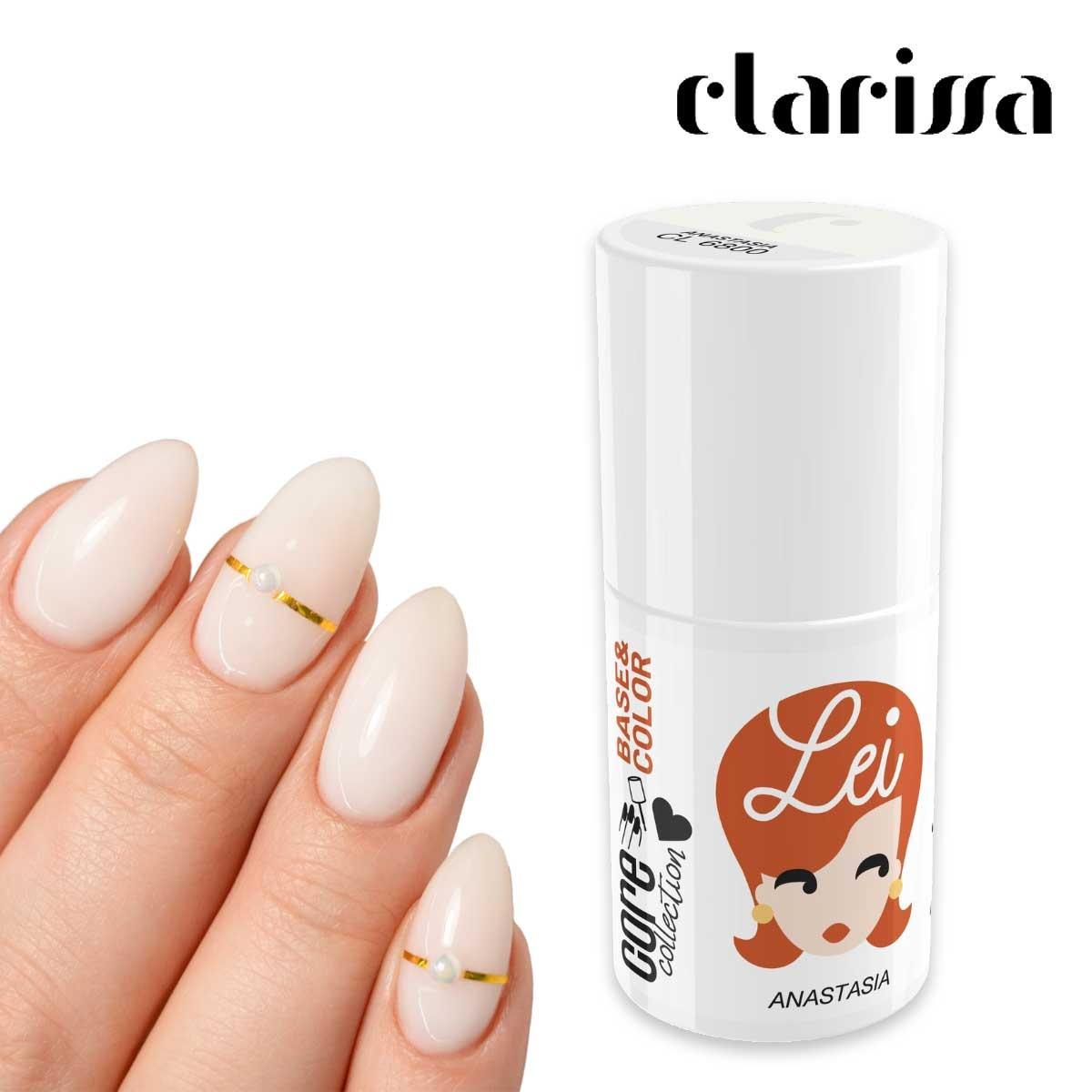 LEI BASE&COLOR ANASTASIA Smalto semipermanente Bianco Latte 2 in 1 , base + color e . Ha una consistenza densa e cremosa. Leviga, protegge e rinforza la lamina ungueale. Si utilizza anche per una piccolissima estensione delle unghie per un aspetto naturale. Led 30 sec. Uv 90 sec.