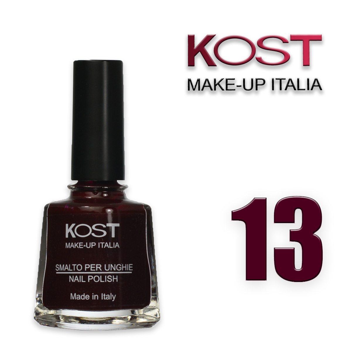 Lo smalto Kost 13 Bordeaux di Kost Make Up è la scelta ideale per chi desidera un colore profondo e sofisticato, perfetto per ogni occasione. La sua formula a lunga tenuta garantisce una copertura uniforme e brillante, resistente ai graffi e allo sbeccamento. Facile da applicare grazie al pennello ergonomico, assicura una stesura precisa e senza striature. L’intensa tonalità bordeaux valorizza le unghie, donando un tocco elegante e raffinato al look quotidiano. Arricchito con ingredienti nutrienti, contribuisce a mantenere le unghie idratate e forti, prevenendo la secchezza. Costituisce una soluzione estetica e funzionale per chi cerca qualità , durata e stile in un unico prodotto di alta performance.
